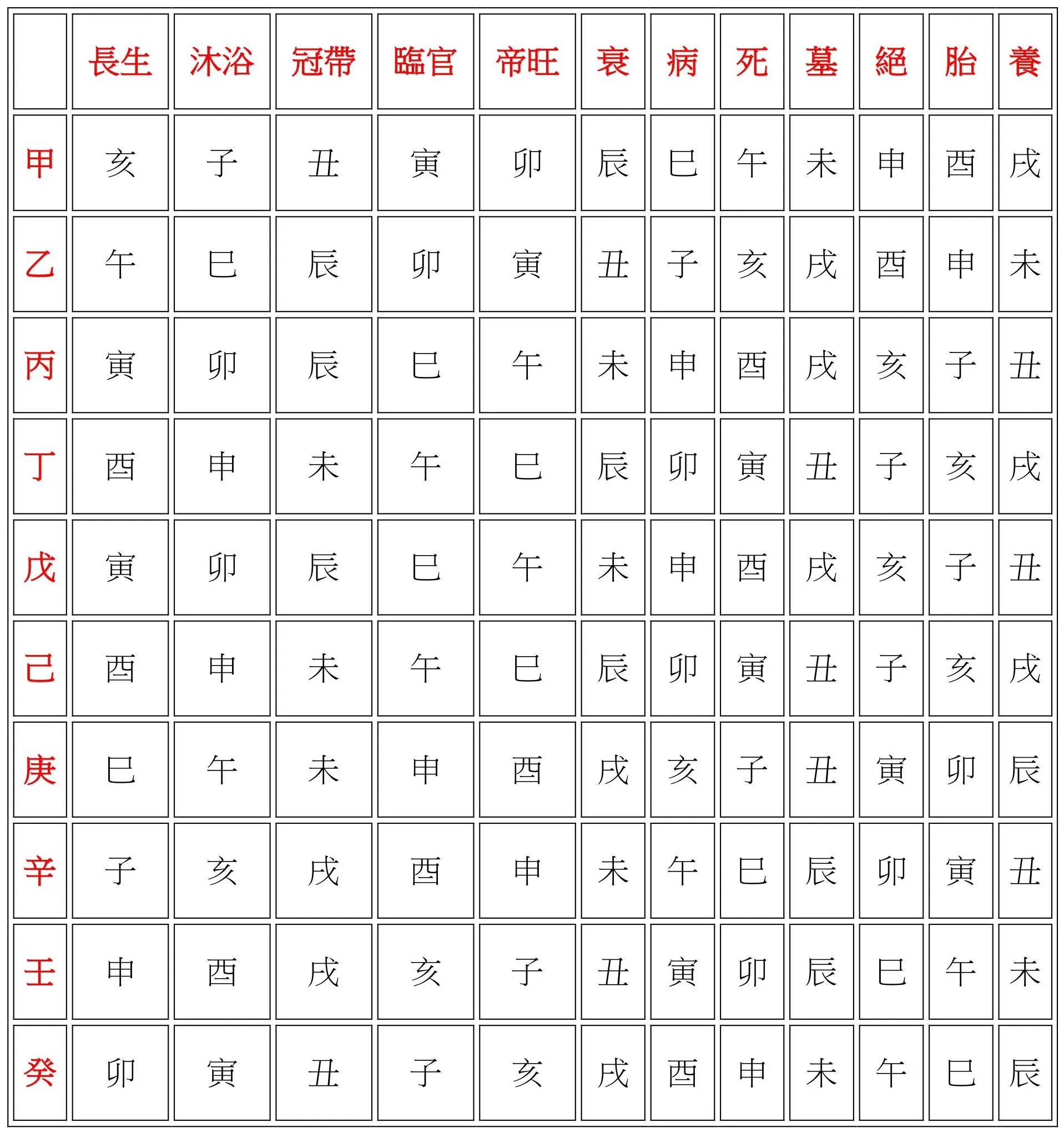 甲 乙 丙 丁 戊 己 庚 辛 壬 癸